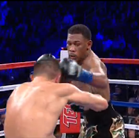 ’Chocolatito’ onto the canvas by the ropes. The champion seemed